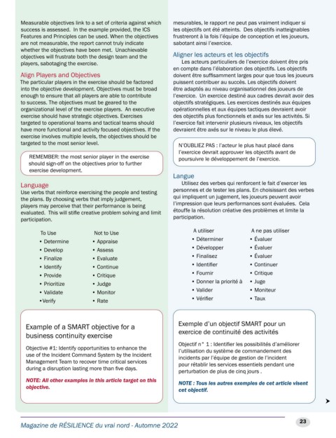 success is assessed. In the example provided, the ICS les objectifs ont été atteints. Des objectifs inatteignables
