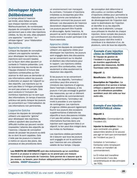 Les INJECTS DE CONTINUITÉ sont des événements qu’un contrôleur commandement.