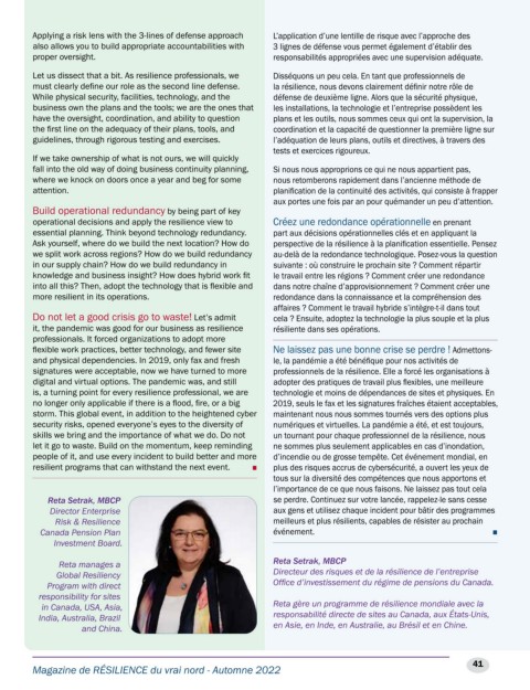 resilient programs that can withstand the next event. ■ plus des risques accrus de cybersécurité, a ouvert les yeux de