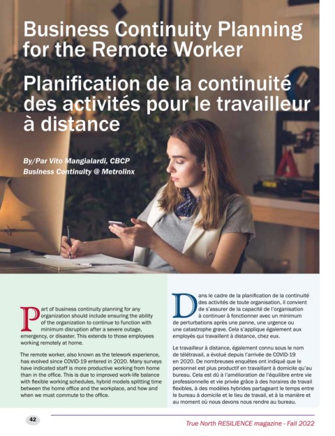 emergency, or disaster. This extends to those employees employés qui travaillent à distance, chez eux.