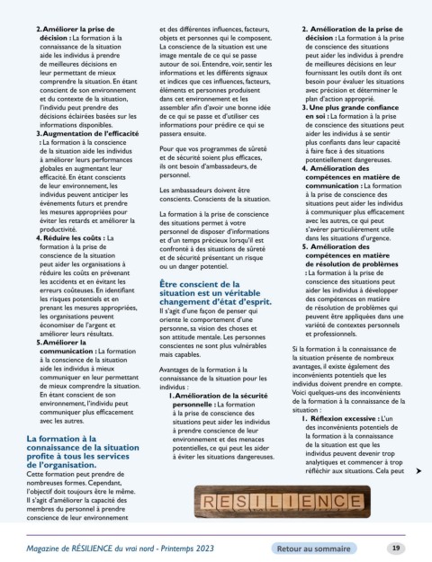 Magazine de RÉSILIENCE du vrai nord - Printemps 2023 Retour au sommaire 19