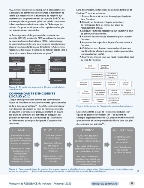 ressources, des canaux d’escalade de décision rapide vers la cas d’incidents affectant plusieurs entités provinciales