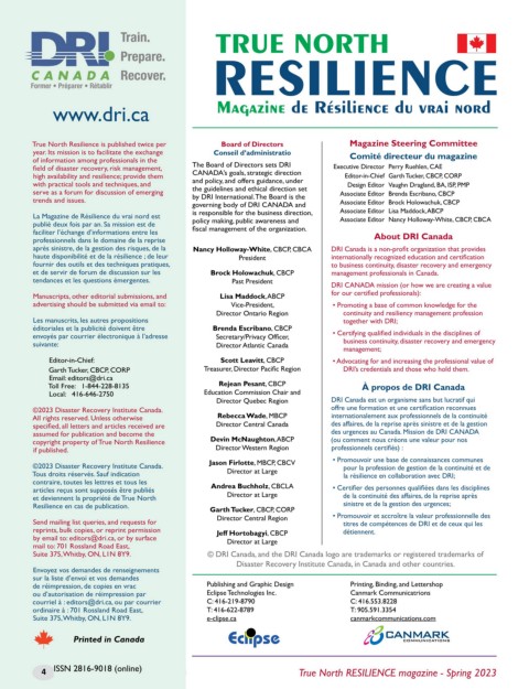 True North Resilience is published twice per Board of Directors Magazine Steering Committee