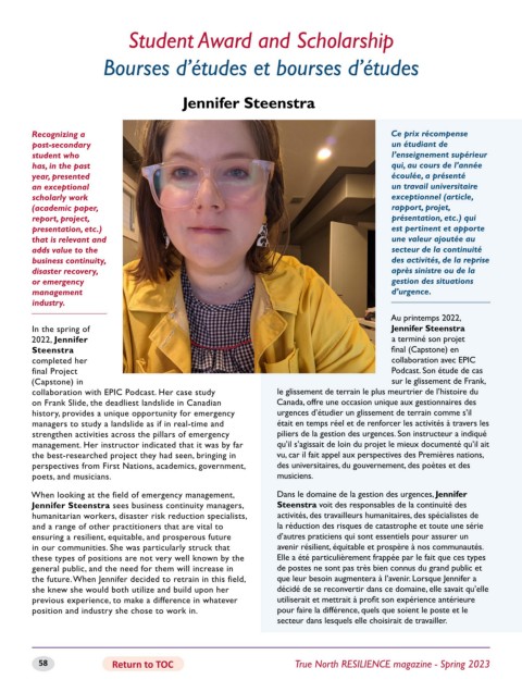 58 Return to TOC True North RESILIENCE magazine - Spring 2023