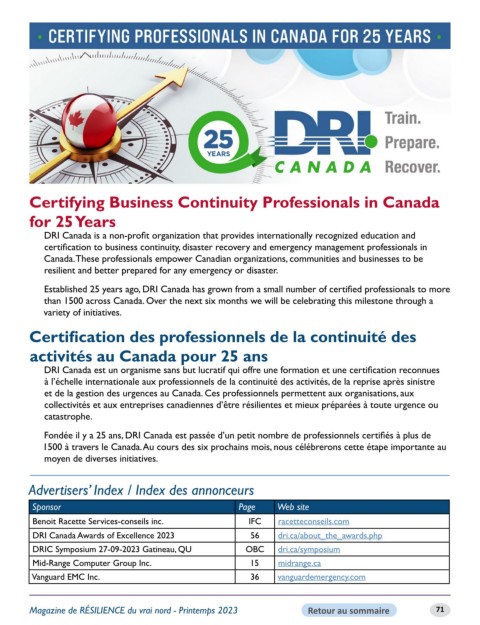 Established 25 years ago, DRI Canada has grown from a small number of certified professionals to more