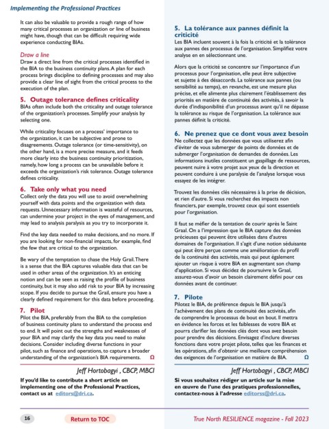 experience conducting BIAs. Les BIA incluent souvent à la fois la criticité et la tolérance