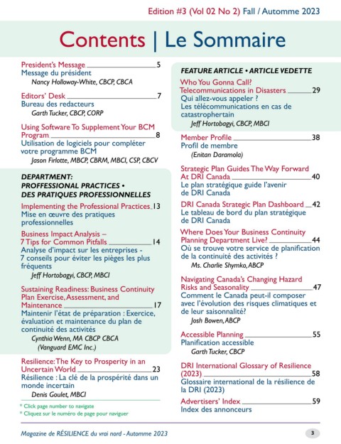 Magazine de RÉSILIENCE du vrai nord - Automme 2023 Retour au sommaire 3