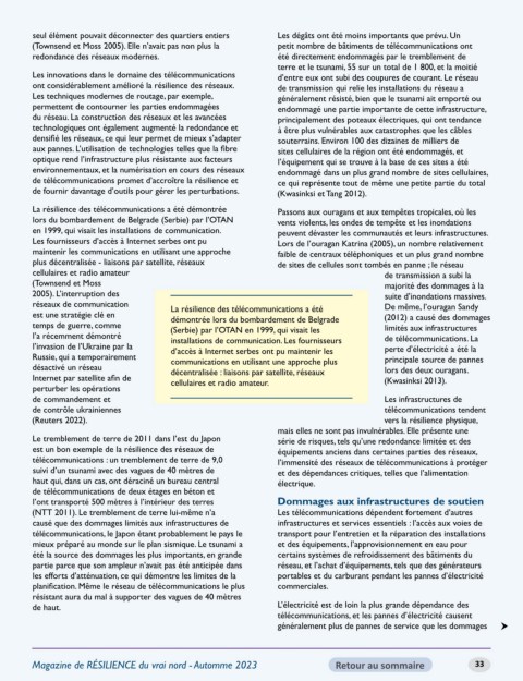 Magazine de RÉSILIENCE du vrai nord - Automme 2023 Retour au sommaire 33