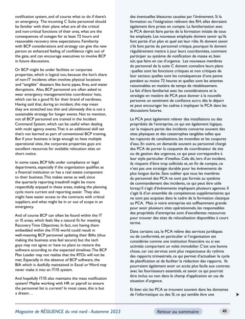 not all BCP personnel are trained in the Incident Le PCA peut également relever des installations ou des