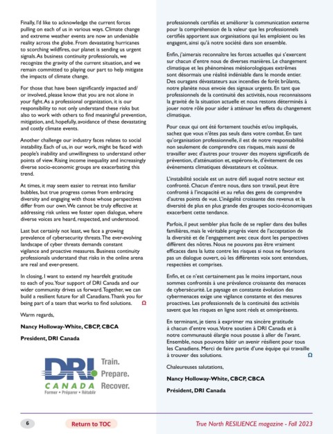 Nancy Holloway-White, CBCP, CBCA à chacun d’entre vous. Votre soutien à DRI Canada et à