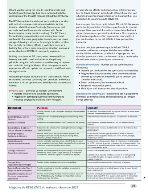 and maintain during incidents. More data points meant Données dynamiques - fournies par les commandants