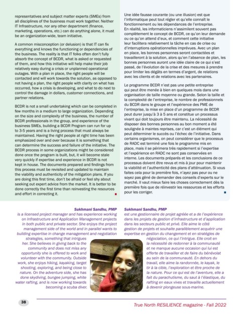 BCDR is not a small undertaking which can be completed in du BCDR dans le groupe et l’expérience des PME de