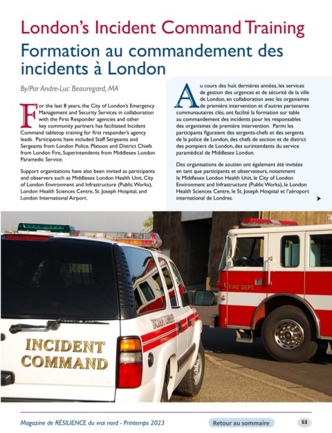 with the First Responder agencies and other au commandement des incidents pour les responsables