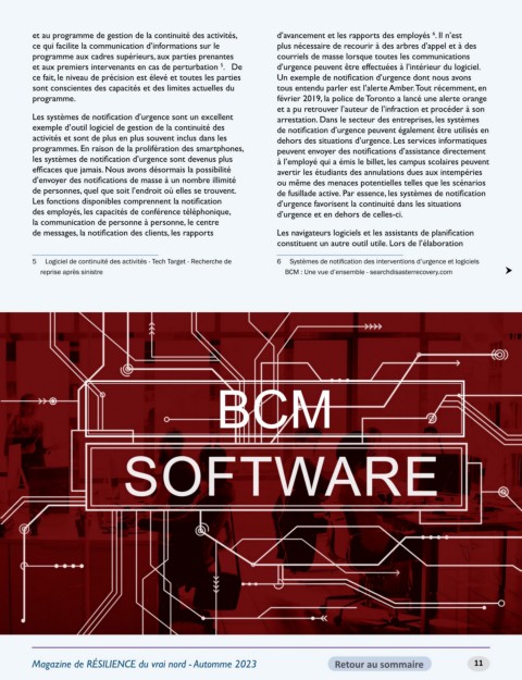 exemple d’outil logiciel de gestion de la continuité des de notification d’urgence peuvent également être utilisés en