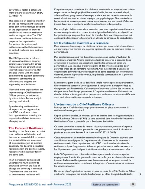 organization thrives in an ever- Chief Resilience Officer » (CRO). Le titre est utilisé dans le cadre de l’initiative «