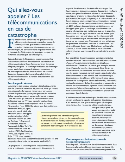 Magazine de RÉSILIENCE du vrai nord - Automme 2023 Retour au sommaire 31