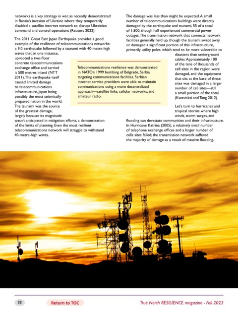 example of the resilience of telecommunications networks: or damaged a significant portion of this infrastructure,