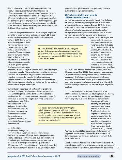 Magazine de RÉSILIENCE du vrai nord - Automme 2023 Retour au sommaire 35