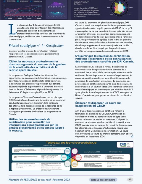 e tableau de bord du plan stratégique de DRI Canada a mené une enquête auprès de ses professionnels