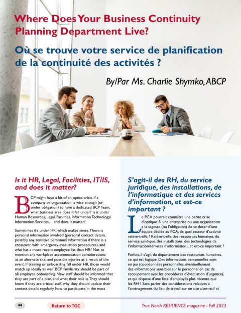 Sometimes it’s under HR, which makes sense. There is Léquipe dédiée au PCA, de quel secteur d’activité