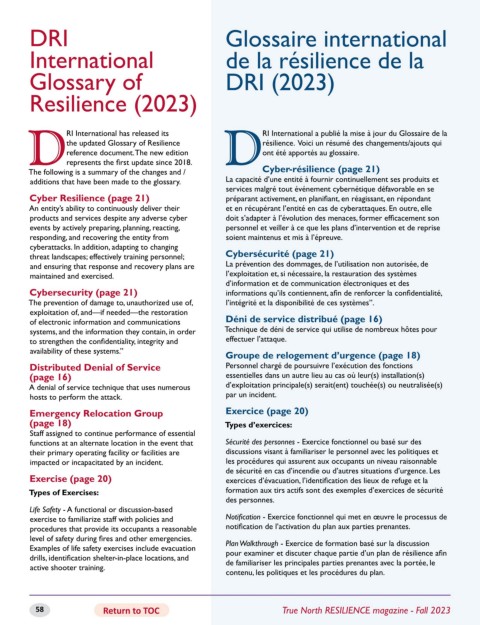 The following is a summary of the changes and / Cyber-résilience (page 21)